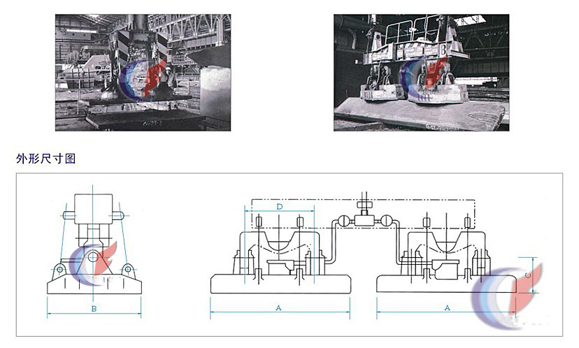 吊運和翻轉(zhuǎn)板坯兼用的電磁鐵,適合于板坯上、下表面的檢查和精整時的翻轉(zhuǎn)作業(yè)用。翻轉(zhuǎn)作業(yè)既快、又好又安全。 特點: 1、磁極結(jié)構(gòu)獨特,為翻轉(zhuǎn)板坯而特殊設(shè)計。能保證準(zhǔn)確而輕易地翻轉(zhuǎn)板坯。 2、當(dāng)使用導(dǎo)向柱的